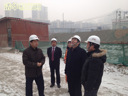 图为校党委书记胡和平调研北京清华医院建设情况。