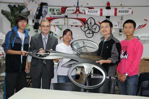 图为天空工场协会同学为达索系统公司代表介绍科技创新成果。