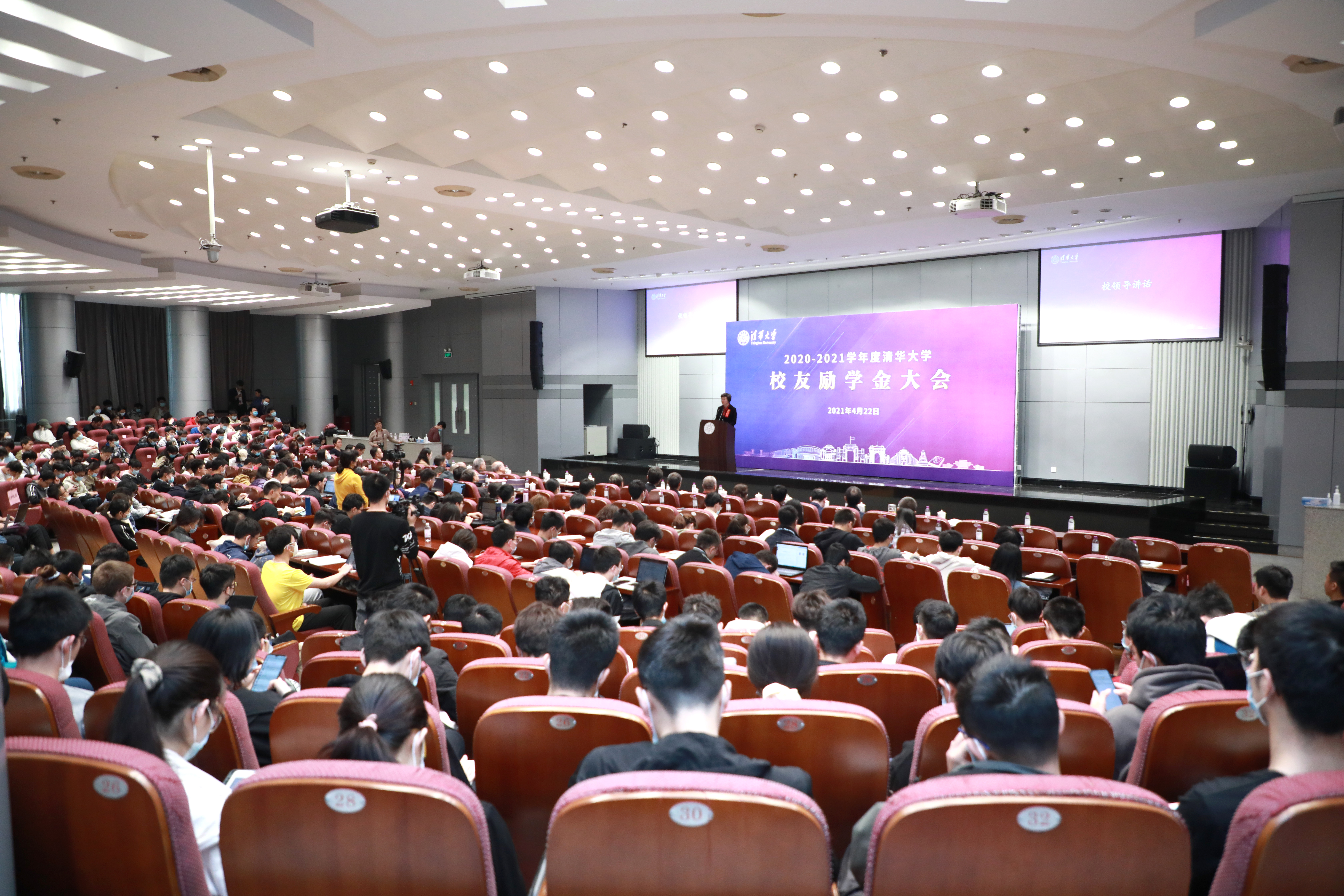 大会现场,学生社团表演了《等风来》《夜空中最亮的星》等曲目,同学们深情的表演饱含了清华人守望相助、生生不息、薪火相传的赤子之心和优良传统。励学金获得者代表还为校友励学金捐赠代表送上了精心准备的礼物。