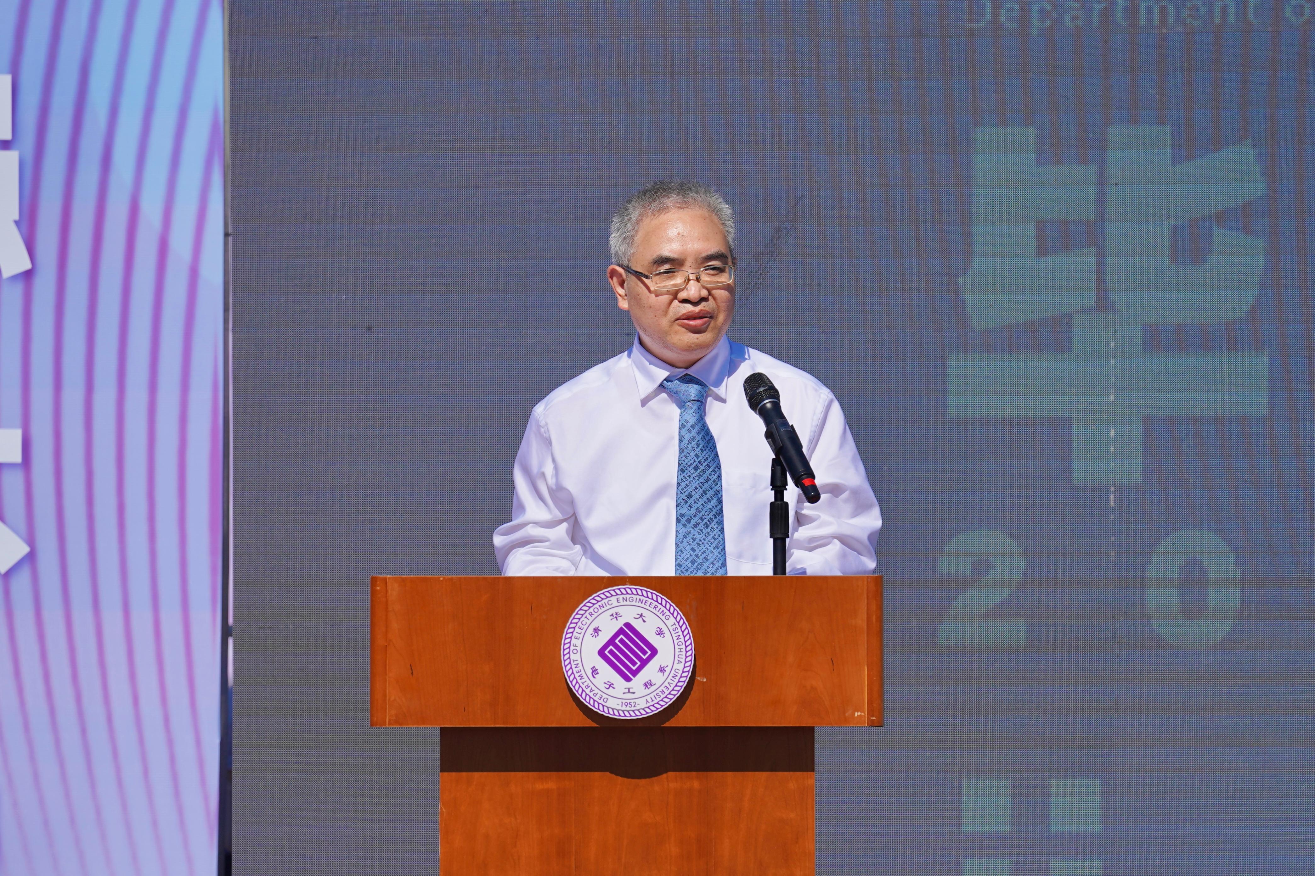 金德鹏向在场全体师生致辞。他提到,电子系是一个大家庭,所有在这里学习工作过的老师同学都永远是大家庭的一员。同学们在电子系的学习中扎实学术、扎根研究,已与电子系成为学术的共同体,毕业后更应不断传承和发扬行胜于言、严谨勤奋、求实创新的清华精神和电子传统。电子系是小家,而国家和社会才是大家。面临实现中华民族伟大复兴的战略全局和世界百年未有之大变局,望同学们厚植家国情怀,在新时代为家国作出自己的贡献。