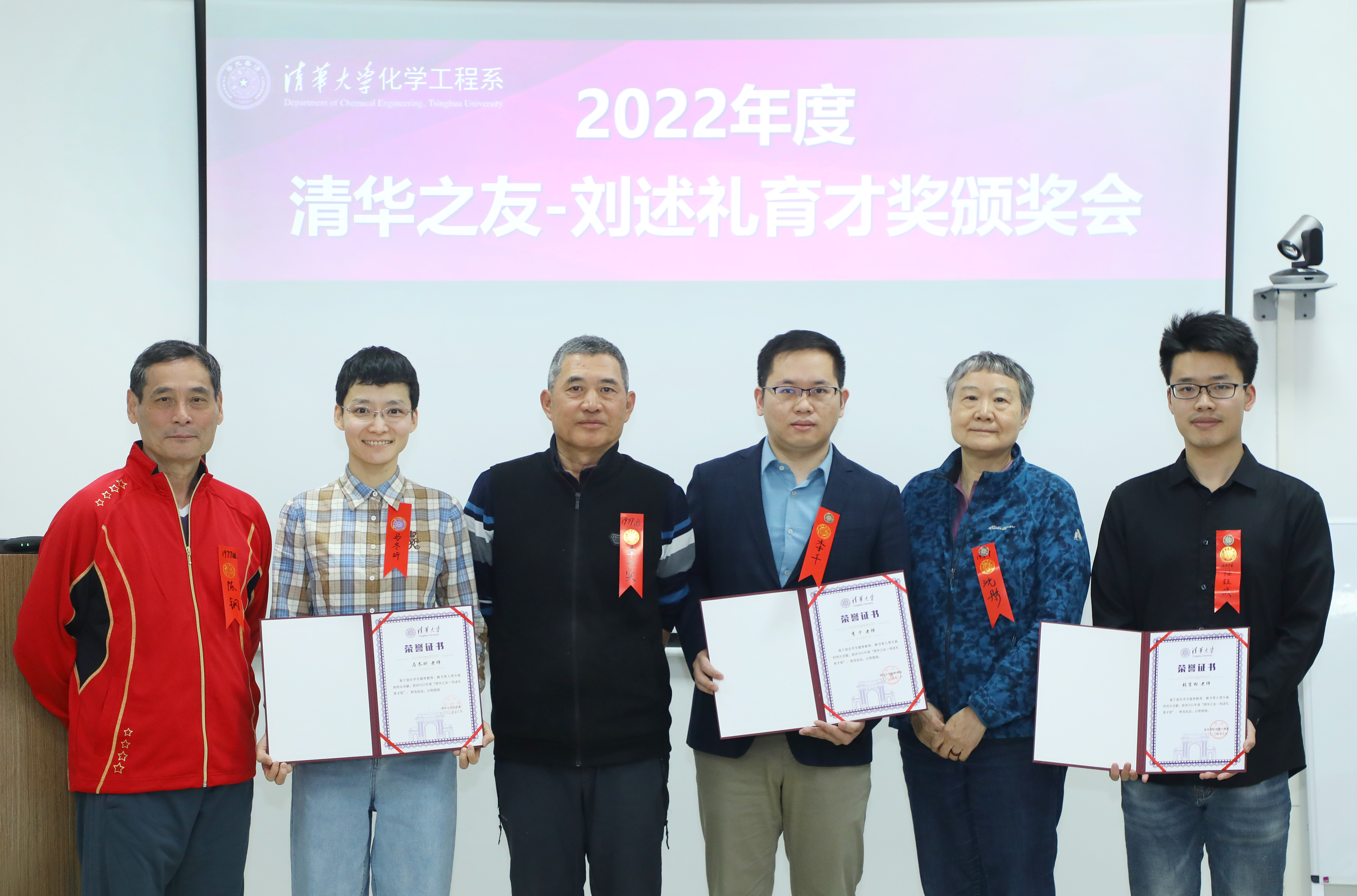 清华新闻网5月2日电 4月30日上午,化工系在工物馆326举办了清华之友-刘述礼育才奖颁奖会暨校庆辅导员专场座谈会。刘述礼育才奖基金捐赠人代表、化工系1977级校友李子实、陈钢、沈彤,化工系主任王铁峰,党委副书记张翀,材料学院党委副书记王炜鹏,在岗辅导员代表和事务教师代表共计20余人参加座谈会暨颁奖仪式。